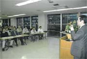 講師を務めたのは「富士宮やきそば」の商標登録業務を行った塩川修治弁理士、富士宮市職員の渡辺孝秀さん、「富士宮やきそば学会」の渡辺英彦会長。塩川弁理士は改正商標法の概要を説明し、渡辺孝秀さんと渡辺英彦会長は、地域ブランドの取得に至るまでの経緯や効果などについて話した。